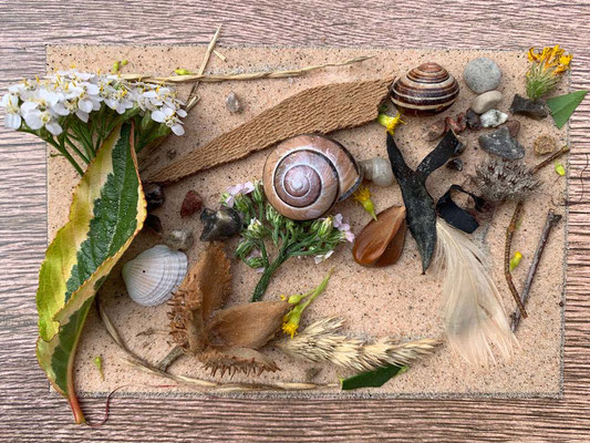 Halt dazu den Naturrahmen auch über Kopf, um zu sehen, wann was vielleicht herunterfällt. Denke dir weitere Experimente aus.